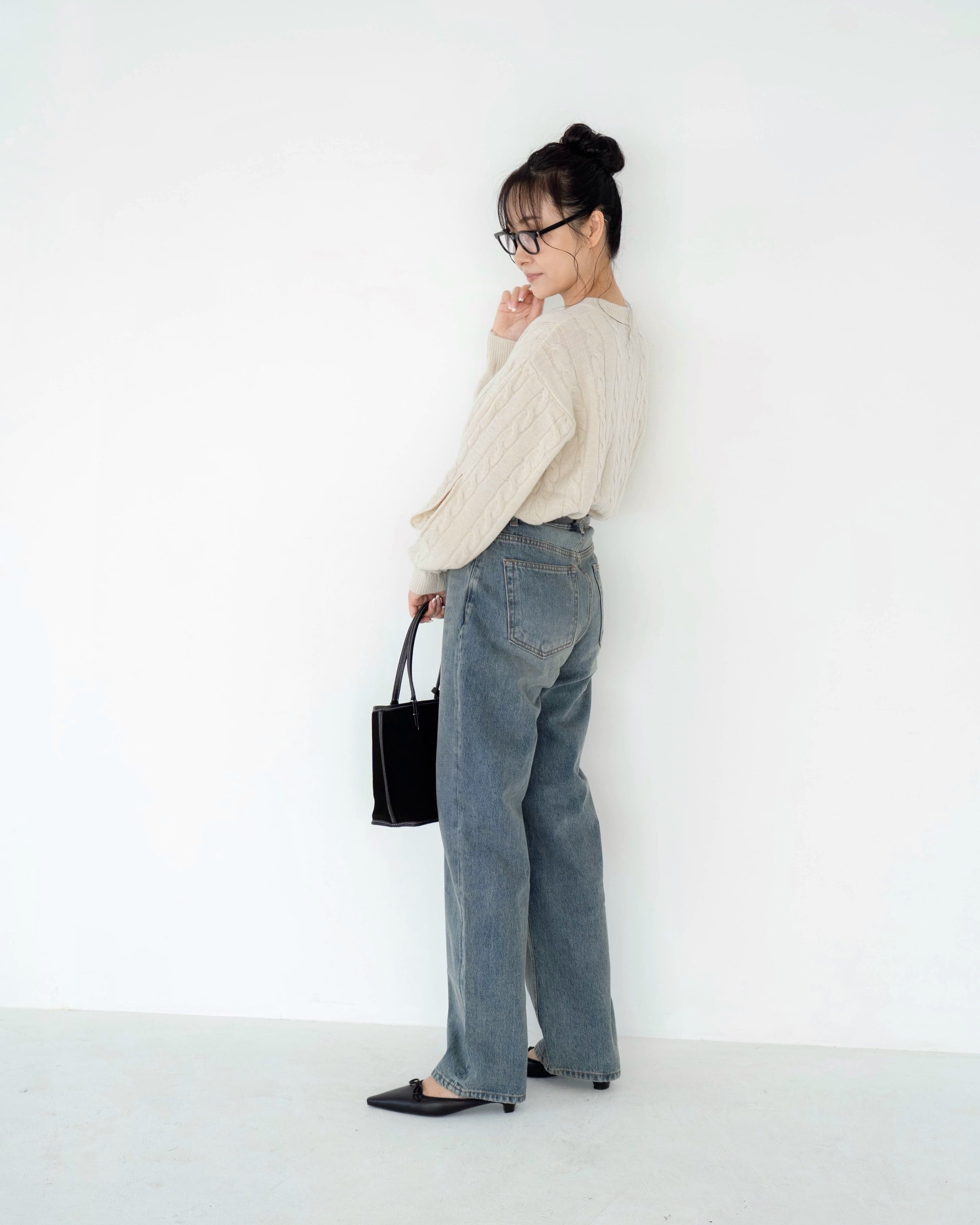 しっかりしている生地のデニムだから、気になる肉感を拾いにくいのも嬉しいポイント。