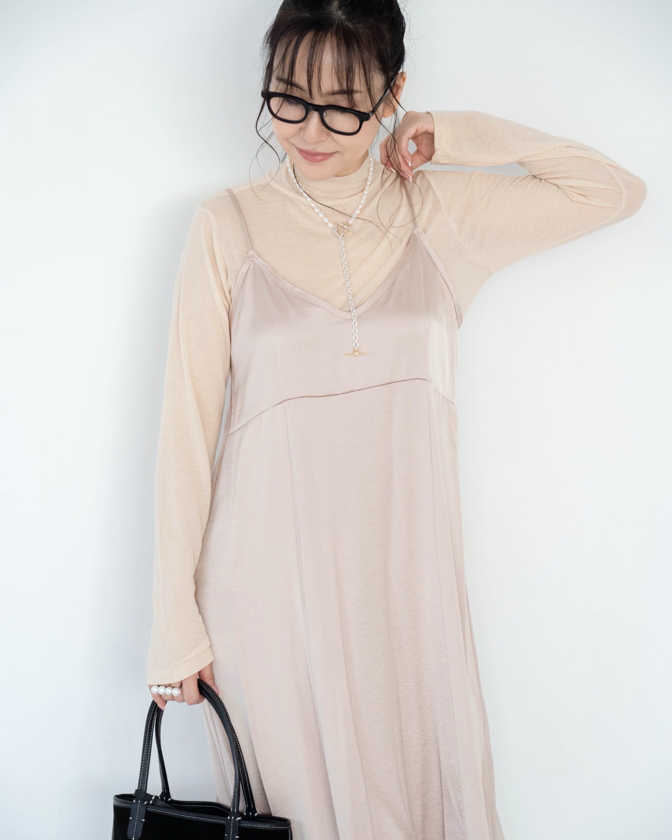 身体に沿うようなとろみ感と光沢感がが女性らしさを引き立ててくれます。