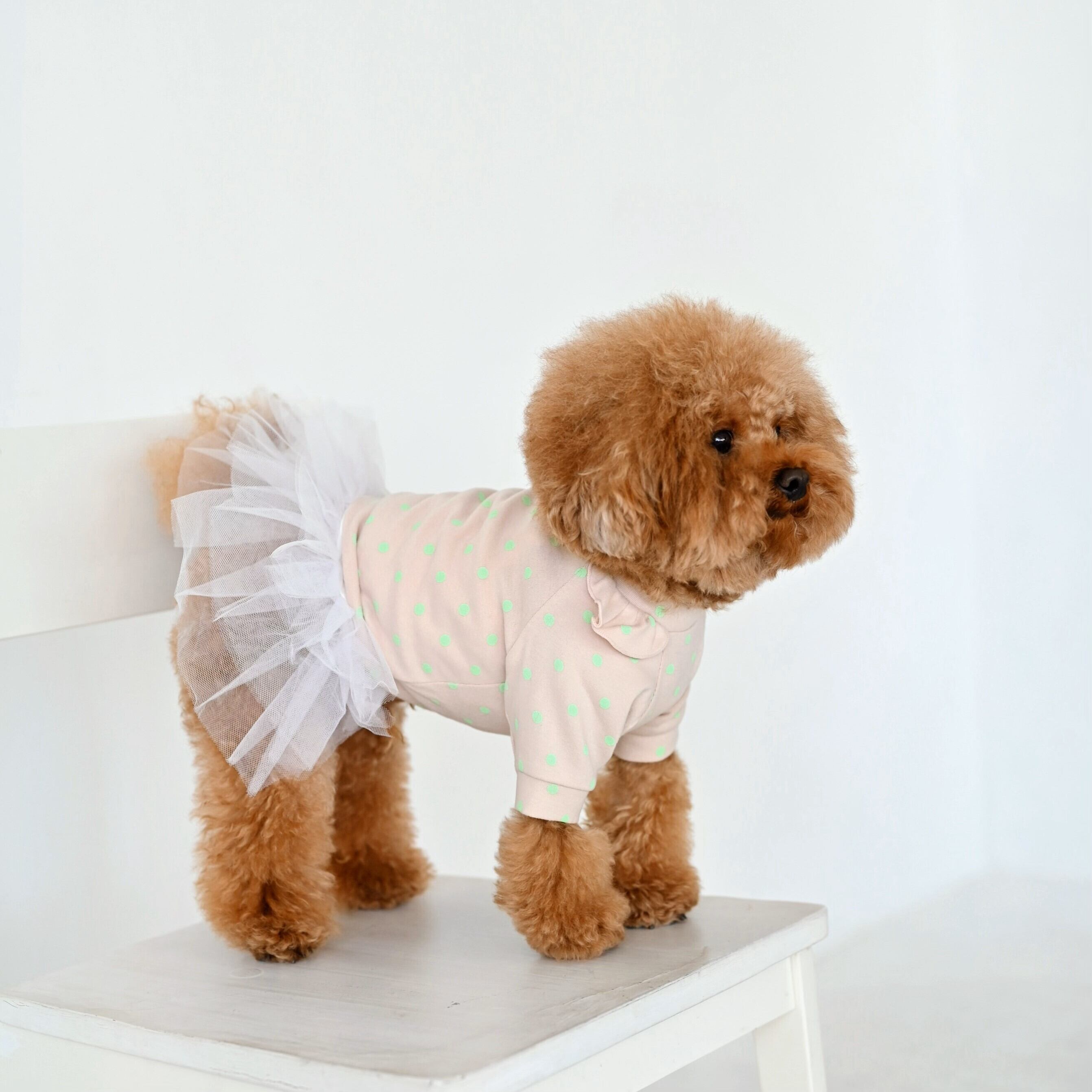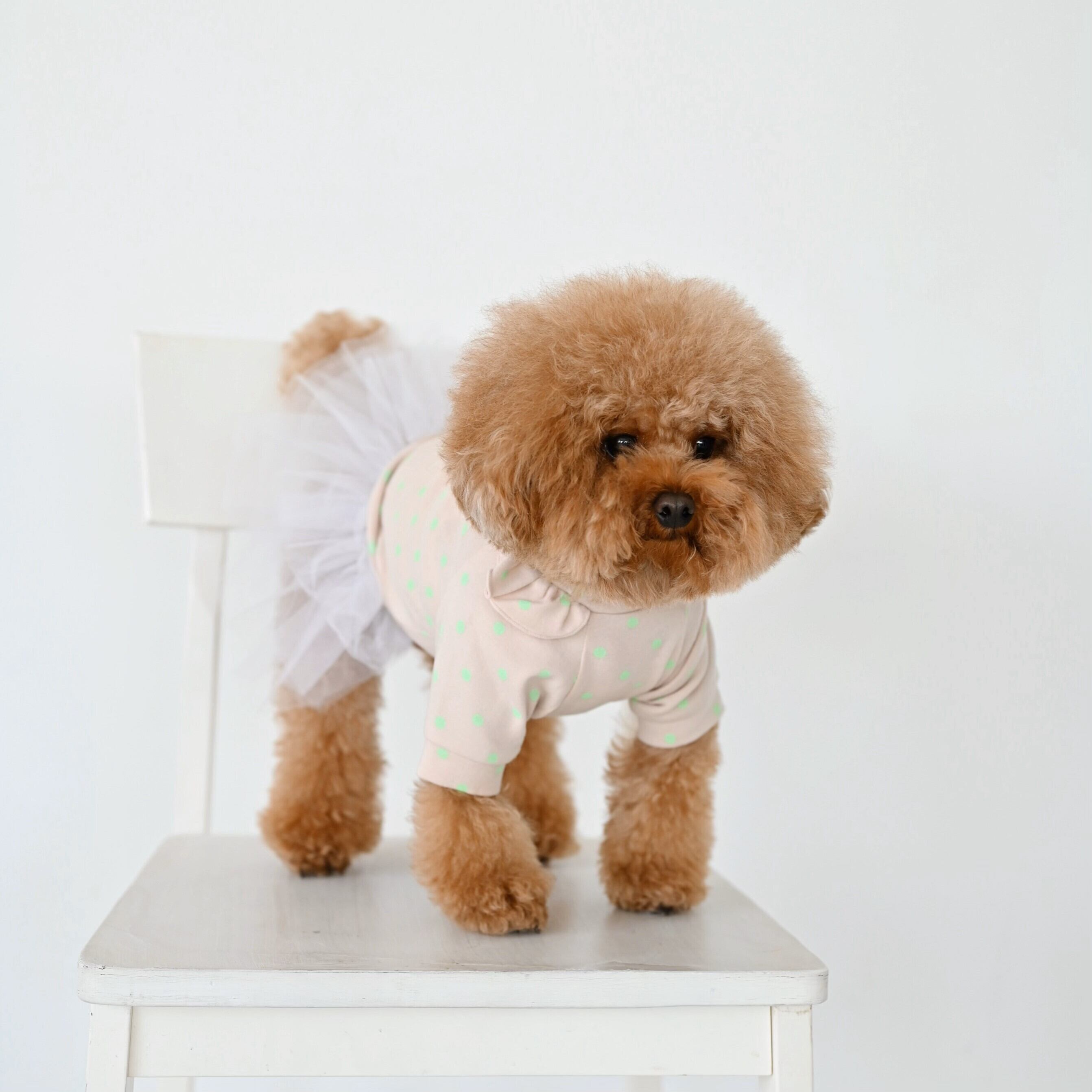 わんちゃんの毛色に合わせやすいトップスです。